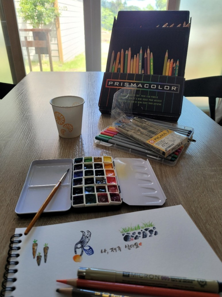 오전 시간에는 학교공부나 학습지를 정말, 아주정말 간단하게 하고, 그림도 그리고 피아노도 치고 나는 살림도 하고.