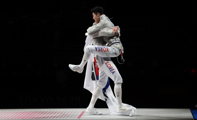 오상욱선수는 연속 득점으로 45-26까지 점수를 벌리며 금메달을 확정 지었다.