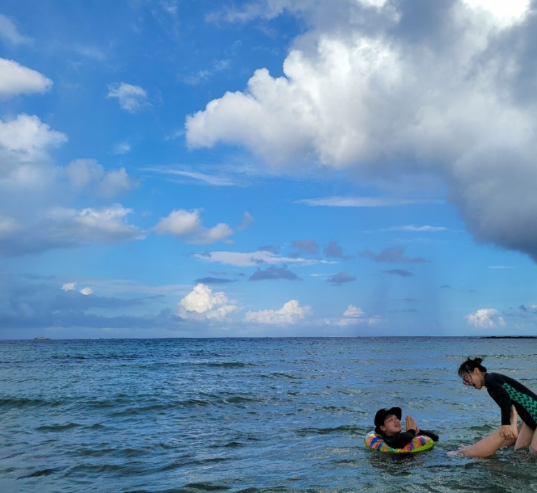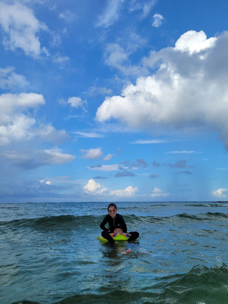 혼자 튜브를 타고 바닷가로 나가 둥둥 떠다니는데 여기가 천국인가 싶었다.