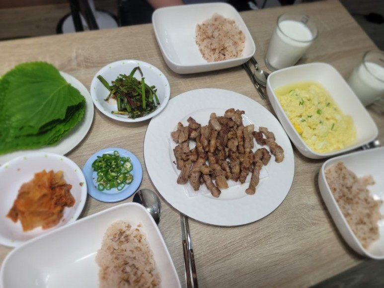 계란찜까지 싹싹 비우고 다 먹고 나니 배는 부르다고 했다.
