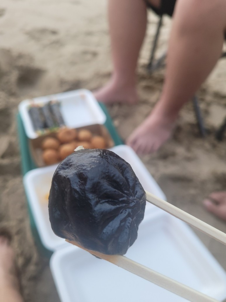 한라봉 주스랑 커피도 마시고 찹쌀빵도 먹고 집에서 가지고 온 과자들도 먹고.