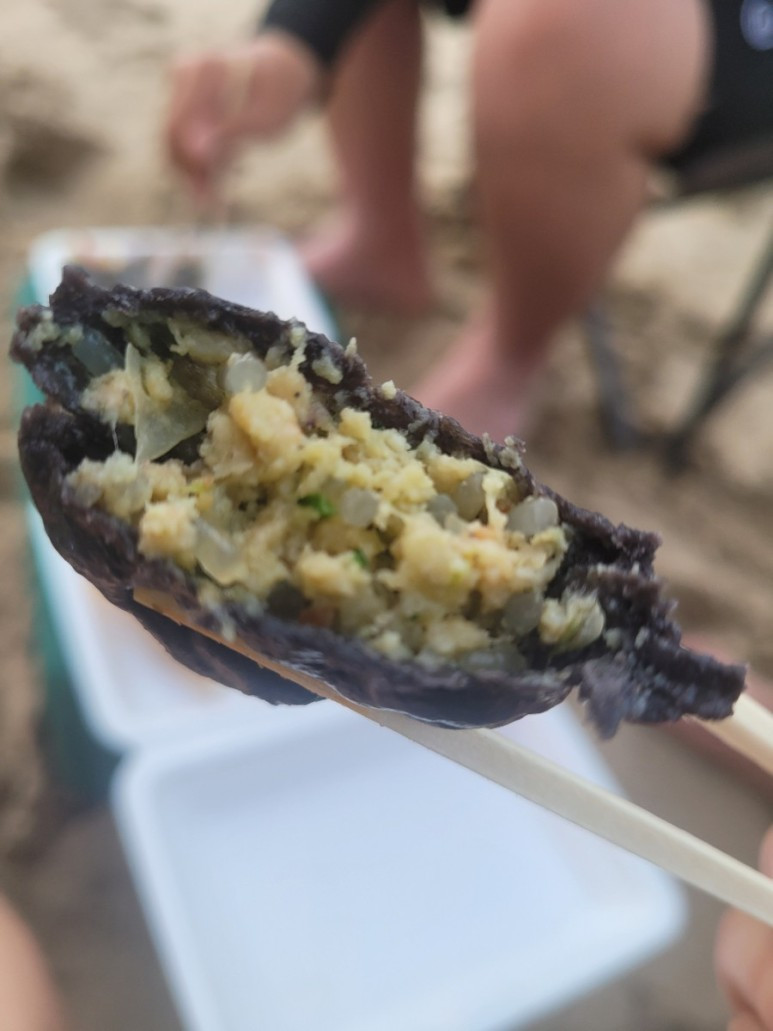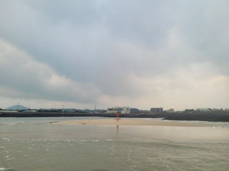 물이 살짝 들어오기 시작하면서 놀던 모래밭이 작은 섬이 됐다.