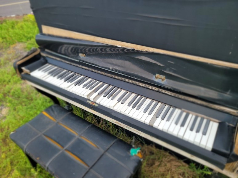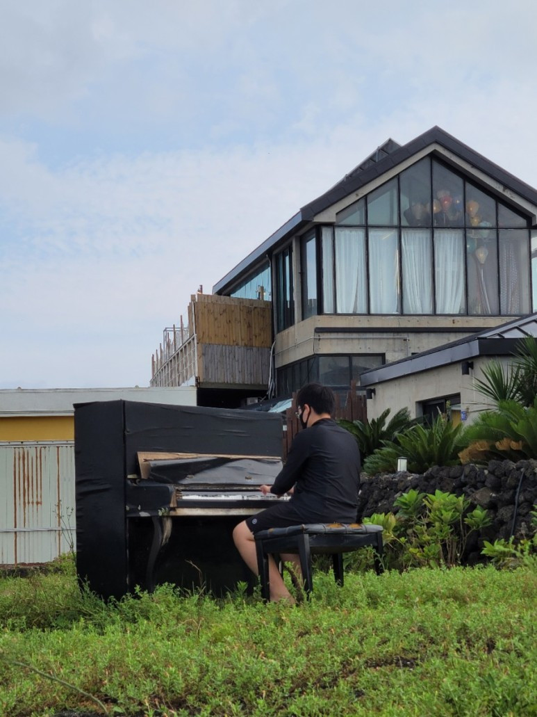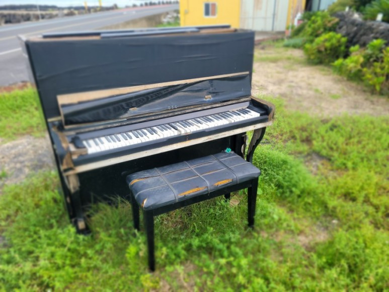 카페 '이런 날엔' 앞에 피아노 한 대가 있다.