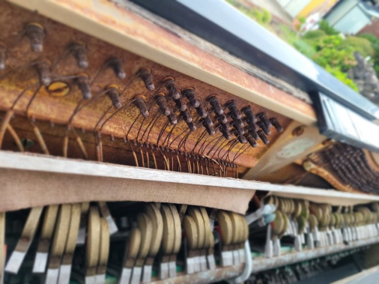 딱 봐도 인테리어용이라 관리 안 되는 피아노인데 석균이가 올라가서 꼭 보고 싶다고 한다.