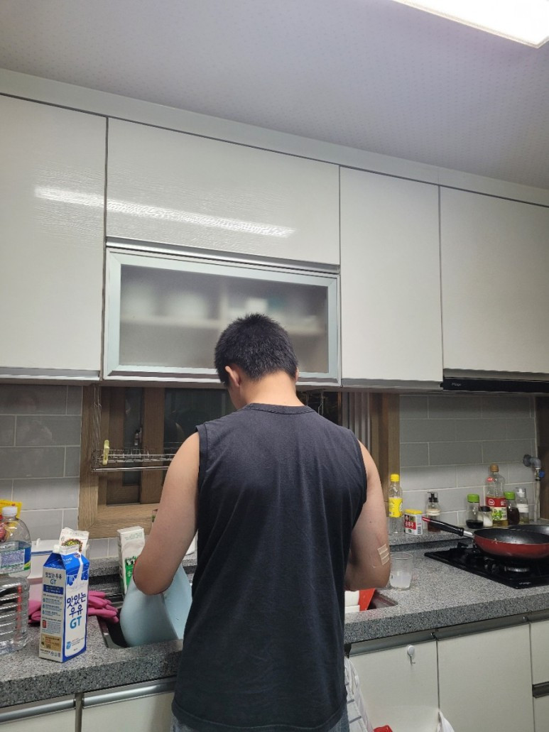 집에 와서 씻고 머리 말리며 저녁을 뭘 먹어야 하나 고민하니 상균이가 후다닥 라면을 끓이겠단다.
