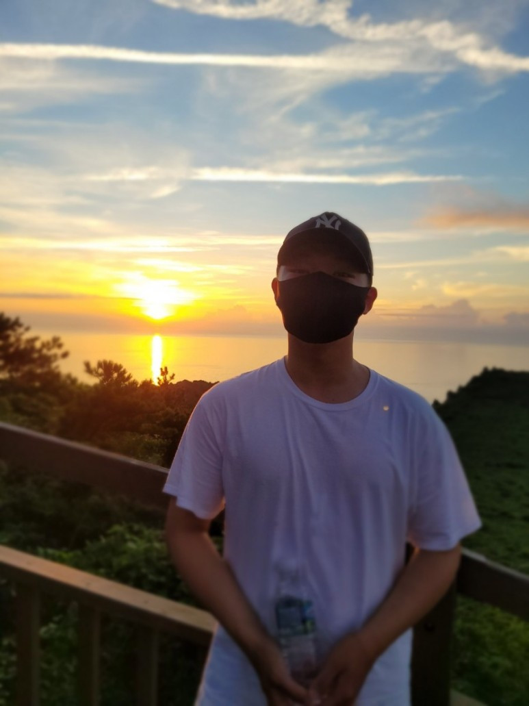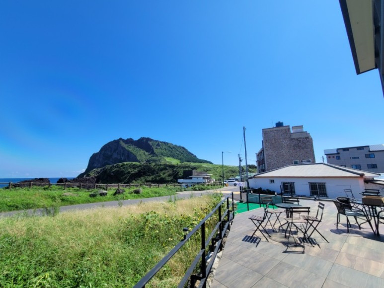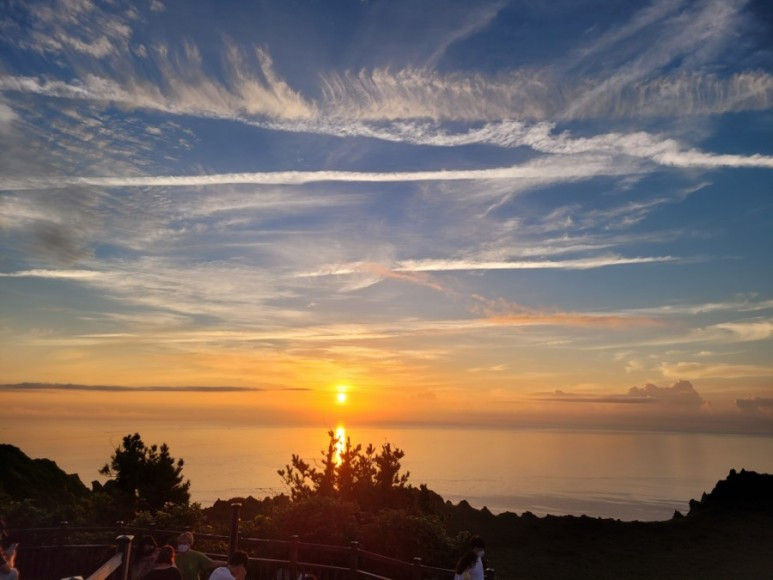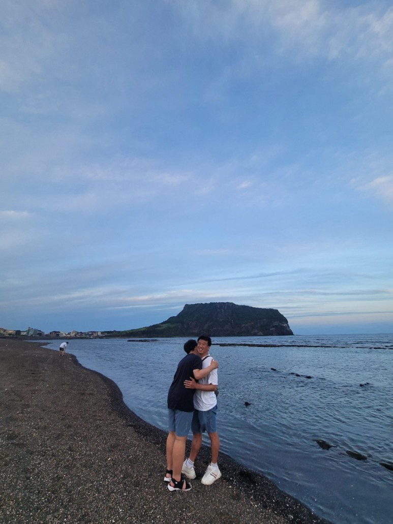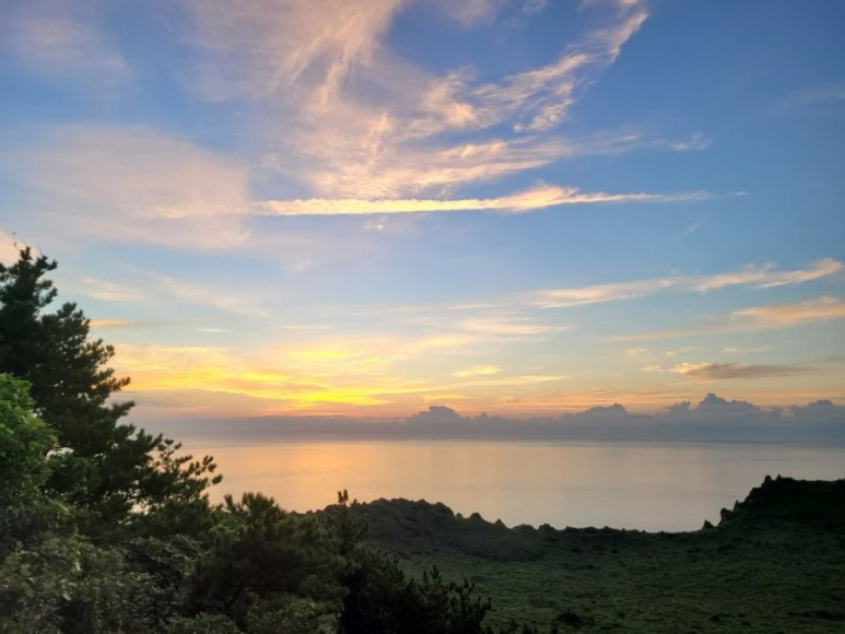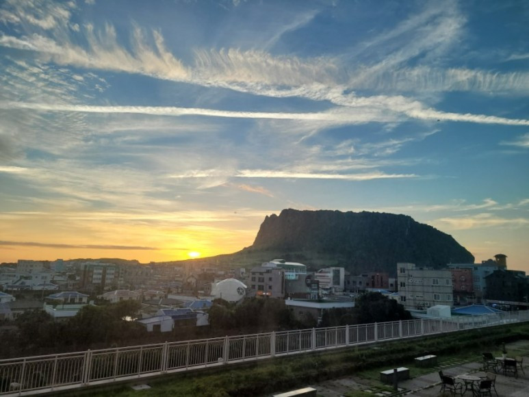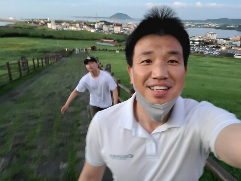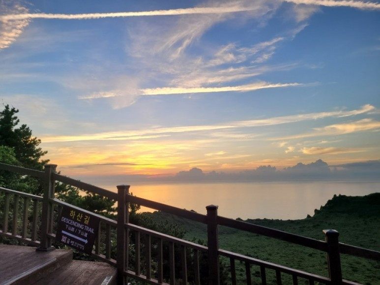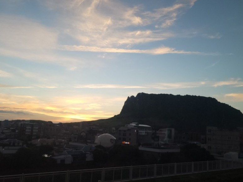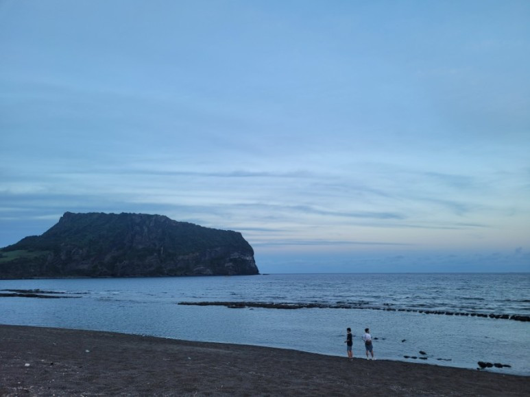 성산에 왔으면 일출봉에는 올라야 한다며 일찍 일어나면 아들들과 다녀오겠다던 남편.