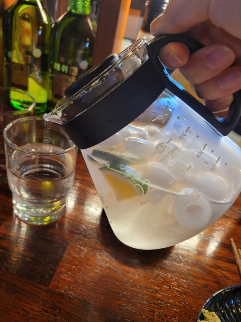 남편이 청양고추 하나 건네주고 후식으로 나오는 파인애플 얻어먹었다. ㅎㅎ