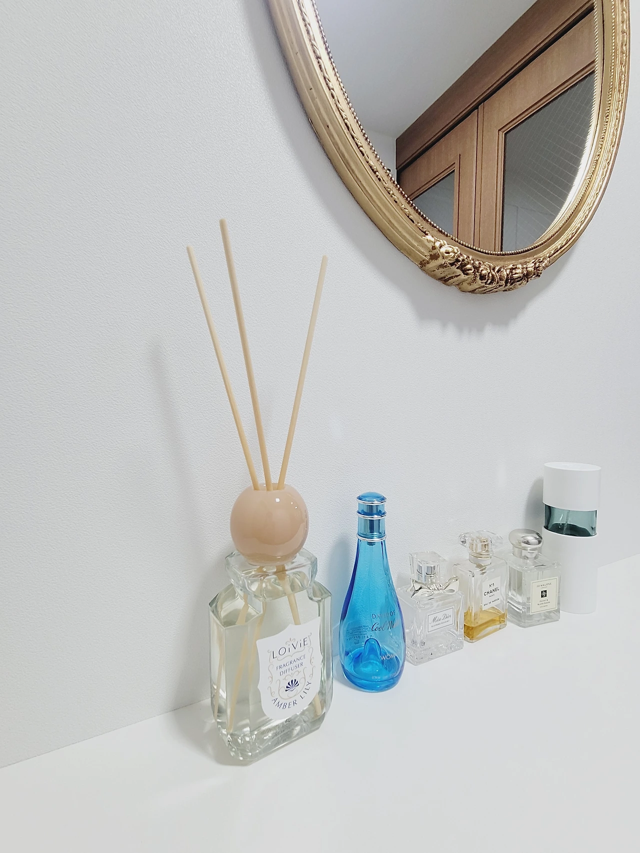 로이비 프래그런스 디퓨저는 신발장 앞 거울아래에 향수들과 함께 뒀다.