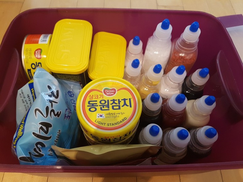 챙겨갈 수 있는 조미료나 식료품들은 더 담아본다.
