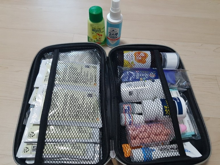후시딘이랑 기침약, 백초는 따로 구입했고 집에 있던 알레르기 안약과 밴드류들, 애드빌은 따로 챙겼다.