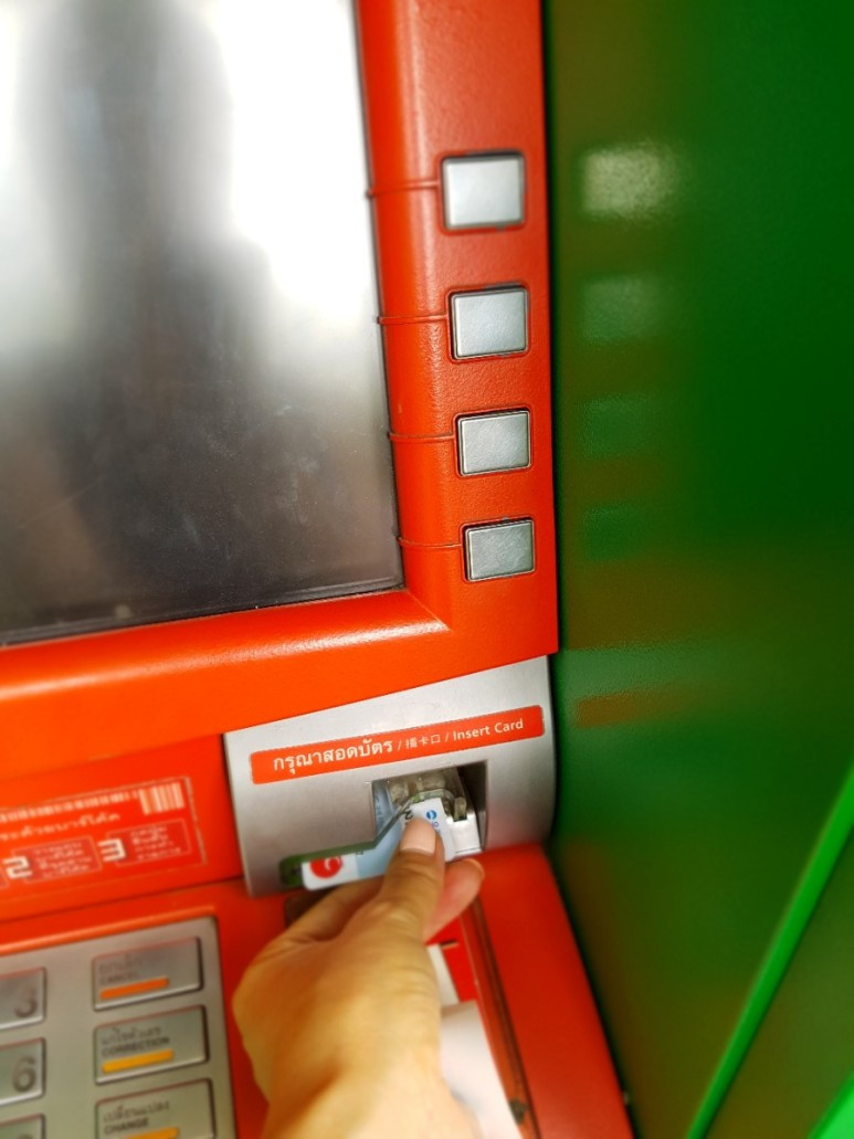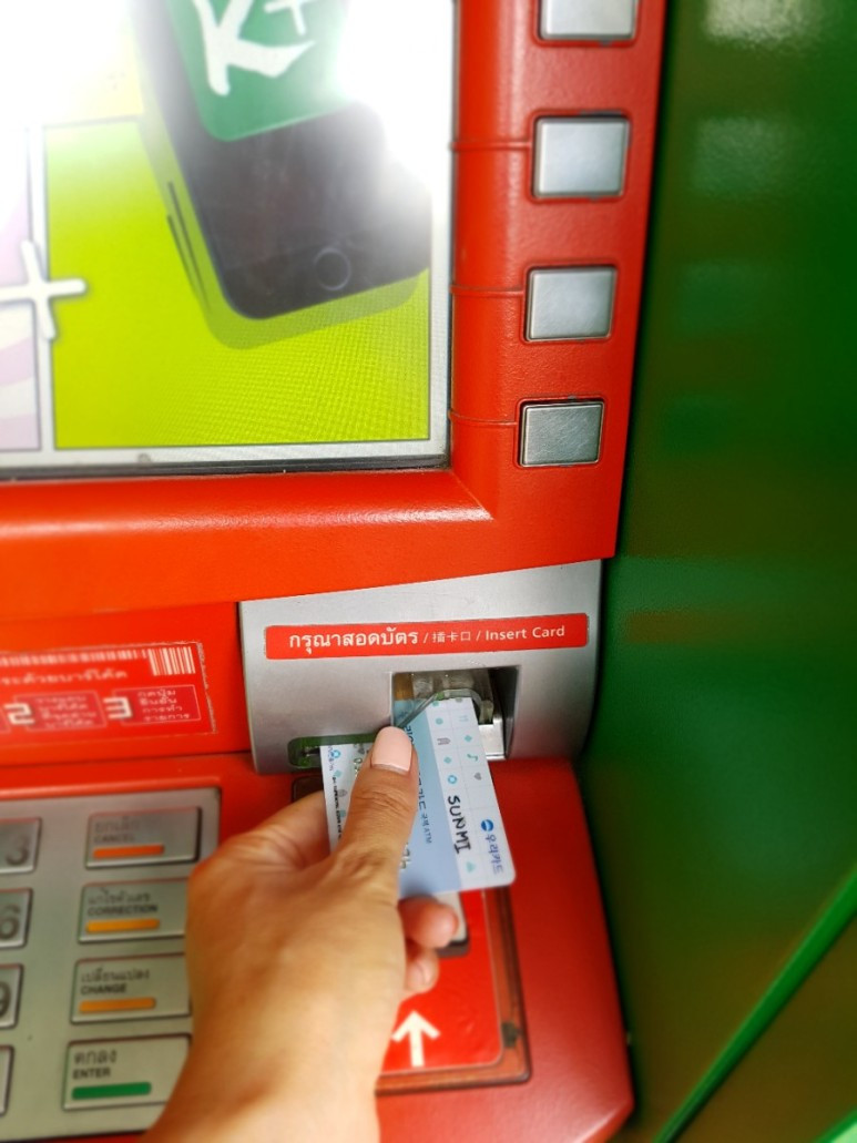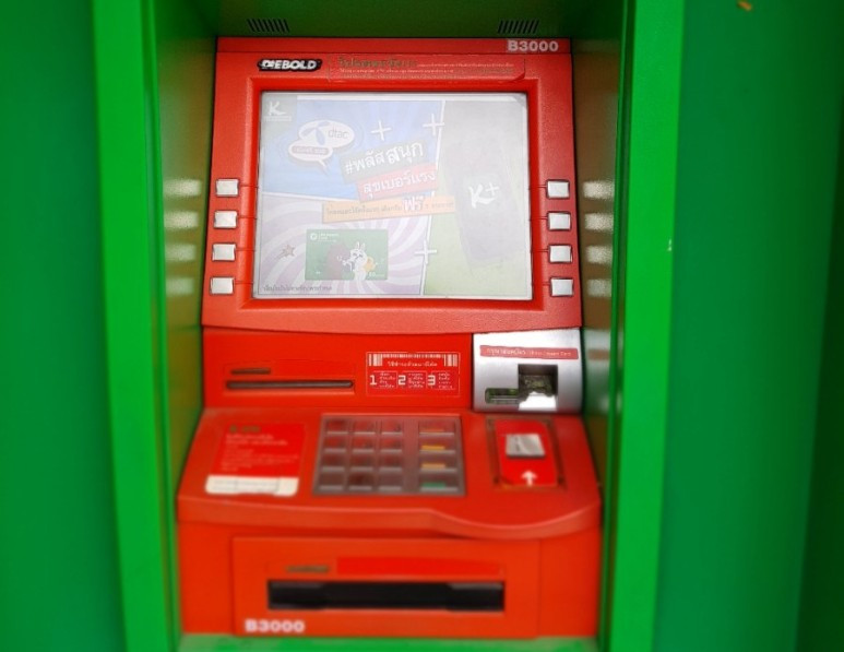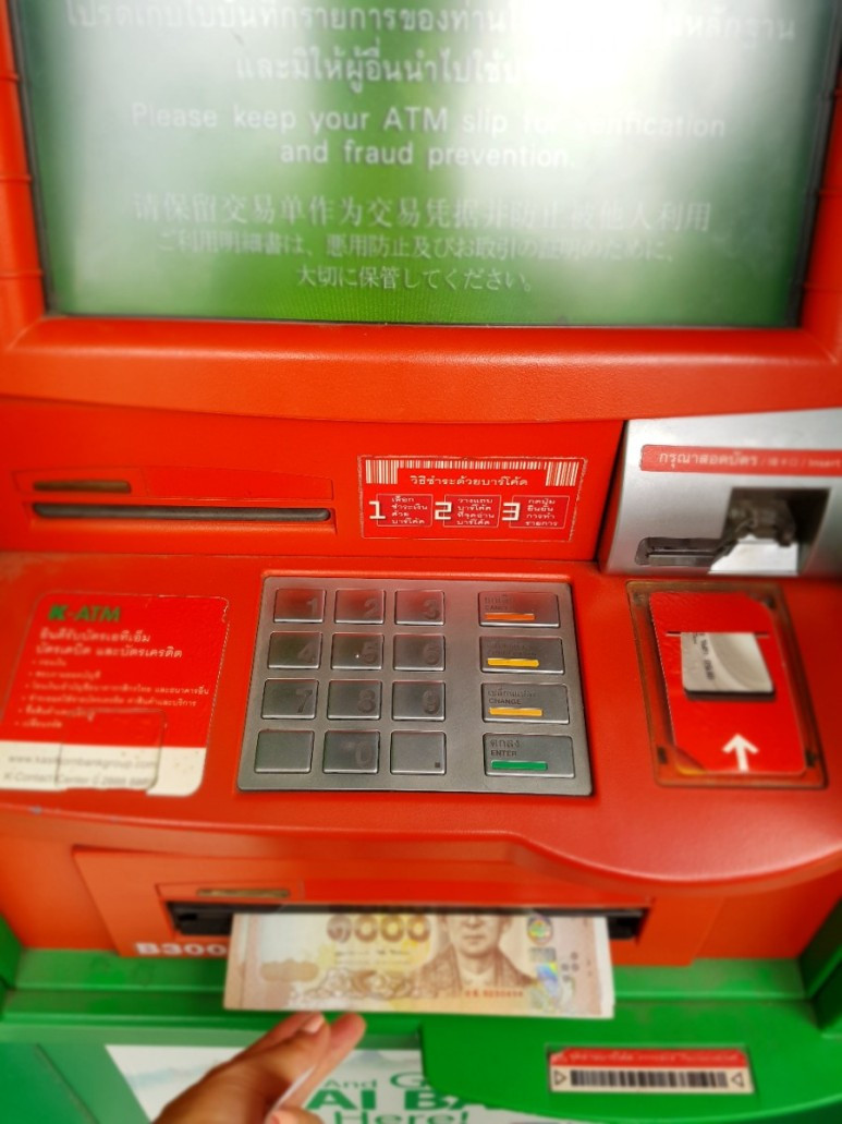 이렇게 초록색 바디에 빨간색 내장이 카시콘은행 ATM기입니다.