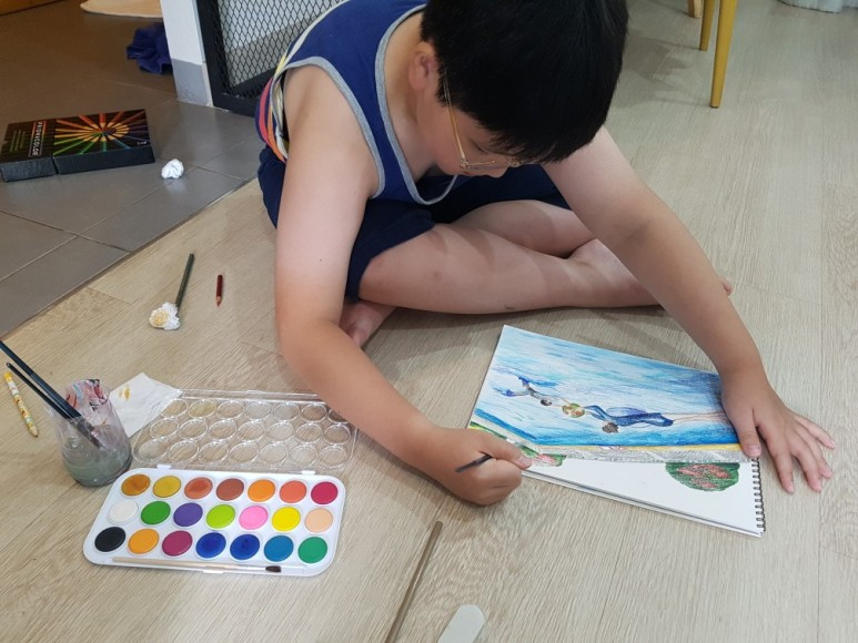 방으로 들어와 상균이는 아침 공부를 시작하고 석균이는 그림을 마저 다 그렸다.