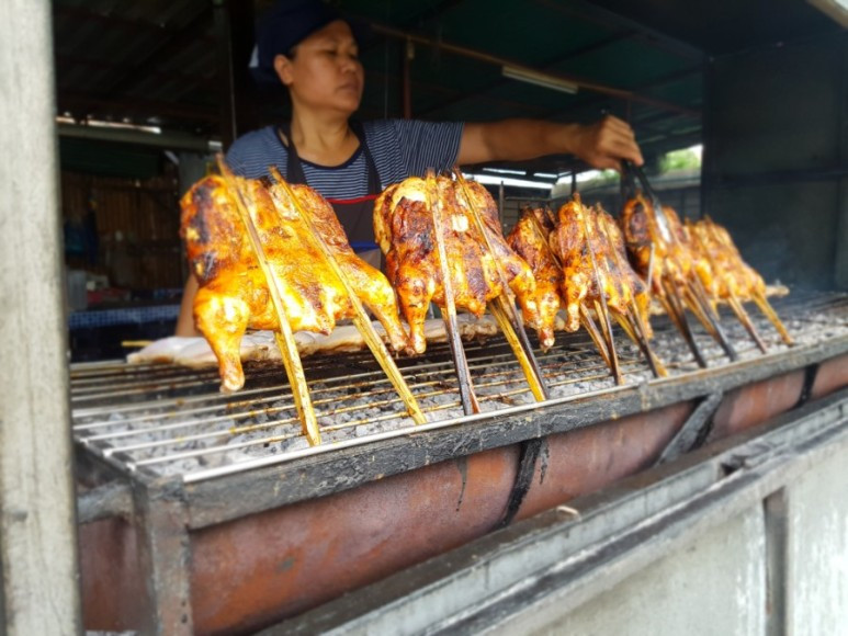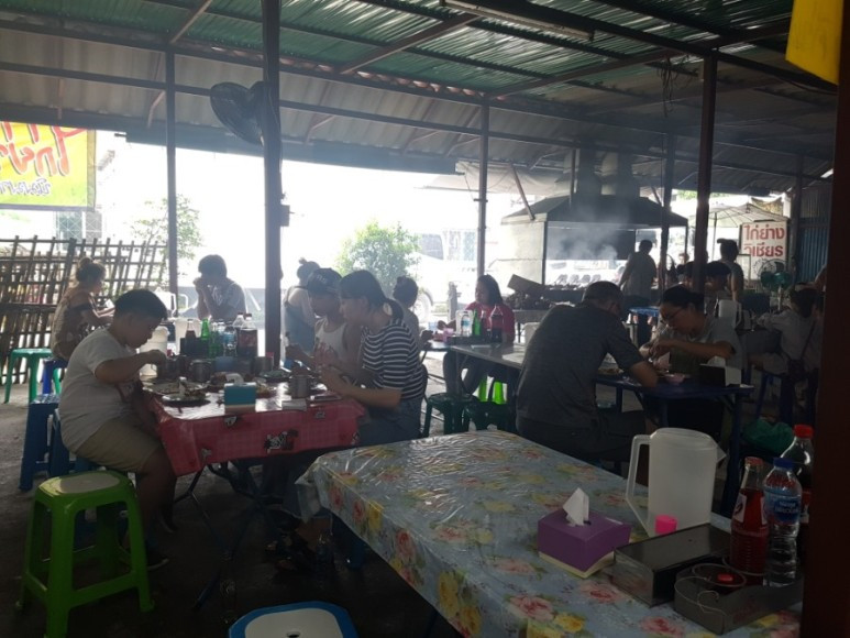 눈 맞추고 열심히 손들고, 닭 한 마리에 쏨땀 한 접시를 시켰다.