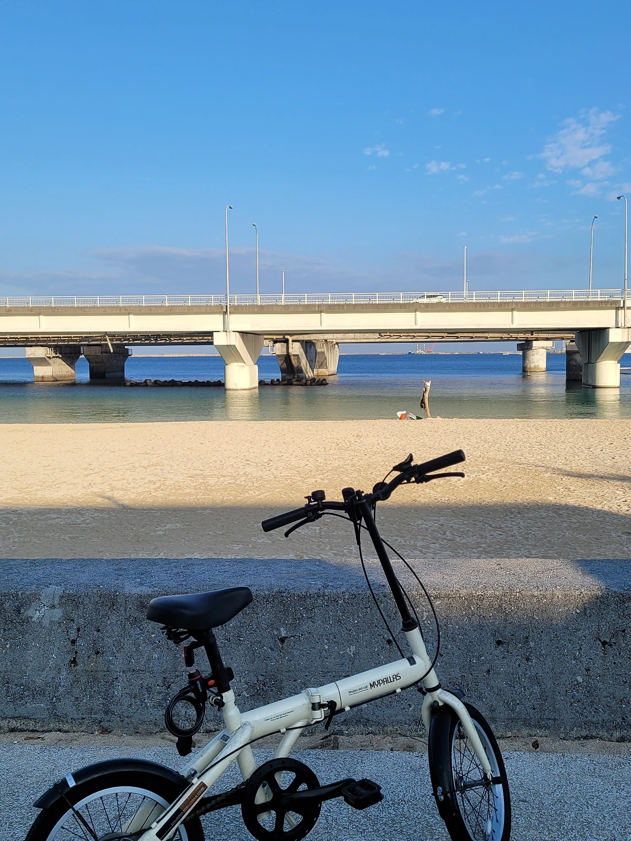 걸어서 22분 거리 해변까지 자전거로 다녀왔다.