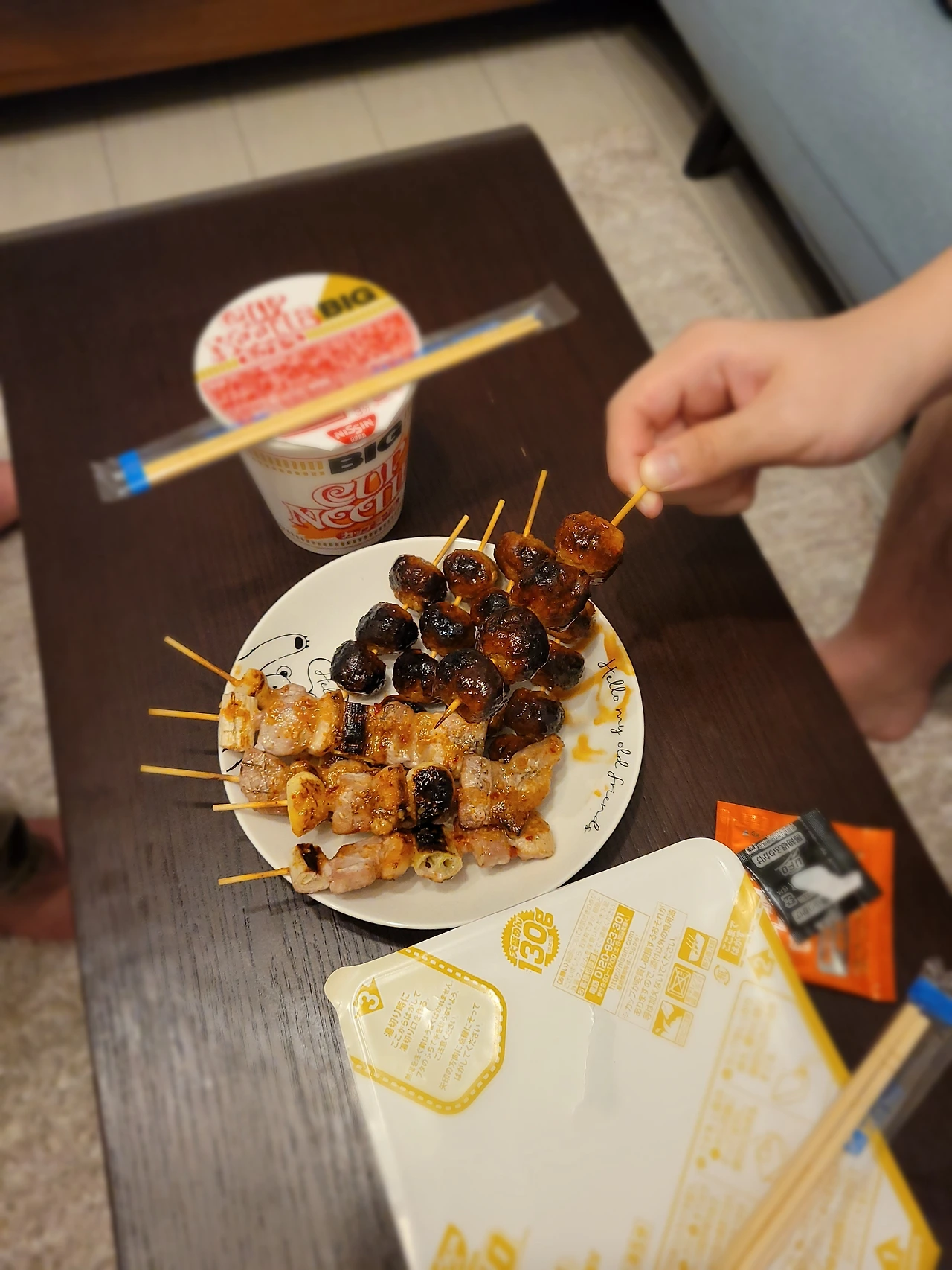나는 정말 배가 너무 불러서 꼬치 두 개 먹고 접었다.