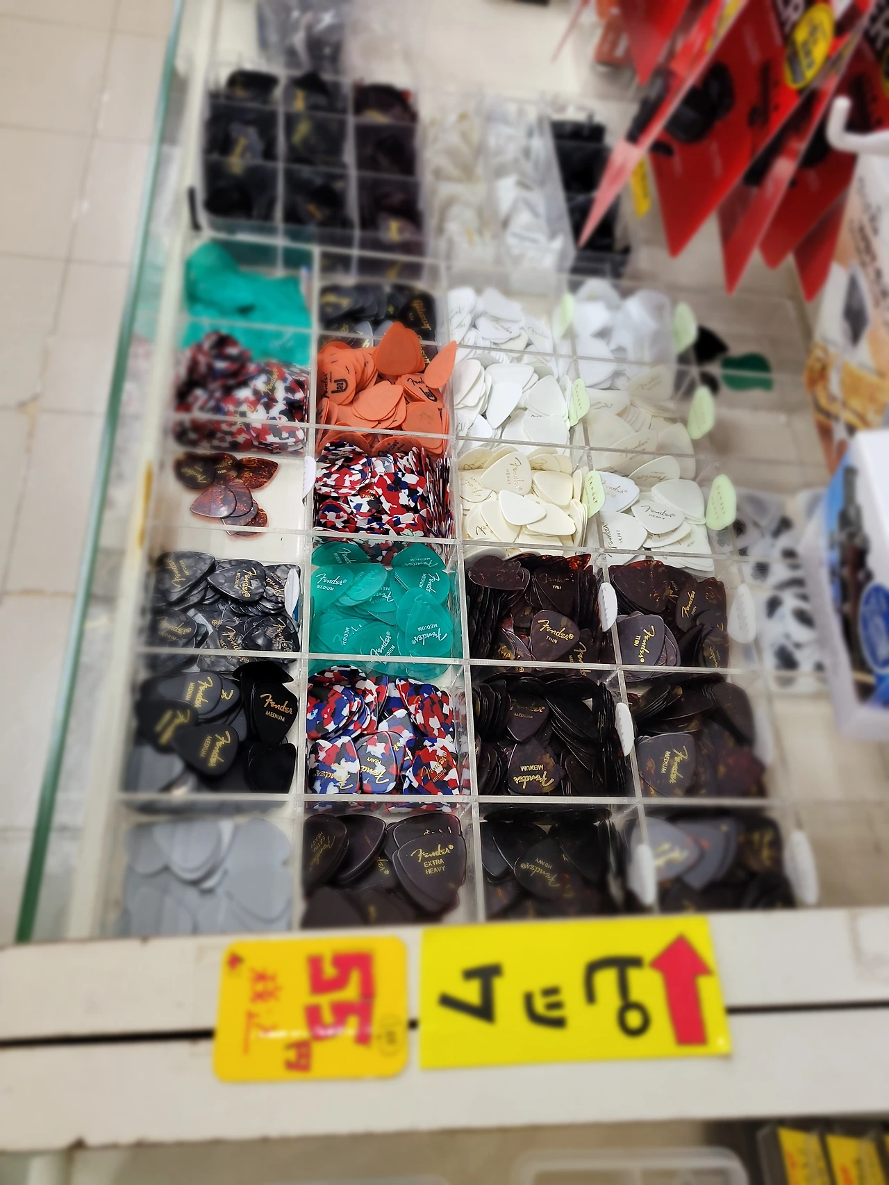 돌아오는 길에 악기점에 들러 석균이가 좋아하는 기타 피크를 하나 샀다. 이건 500원의 행복 이랄까.