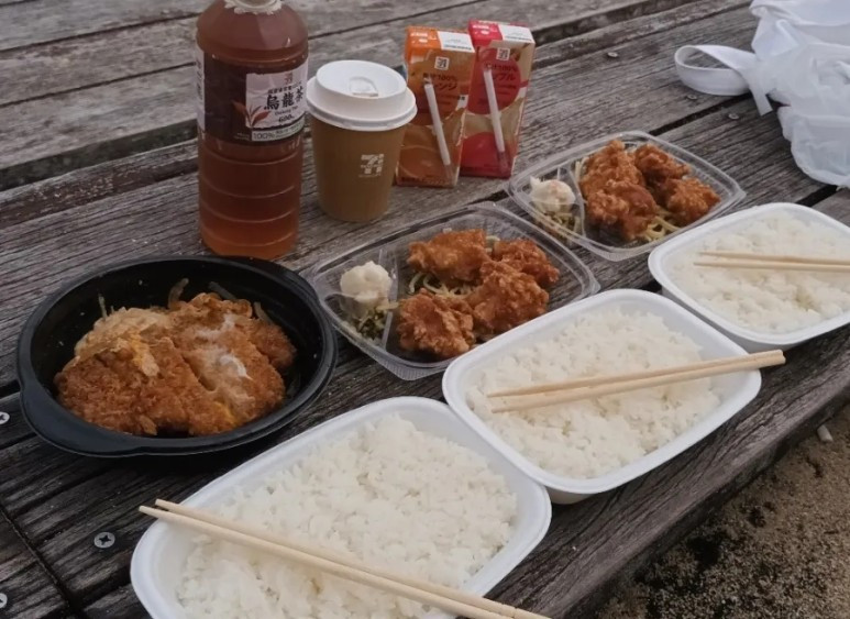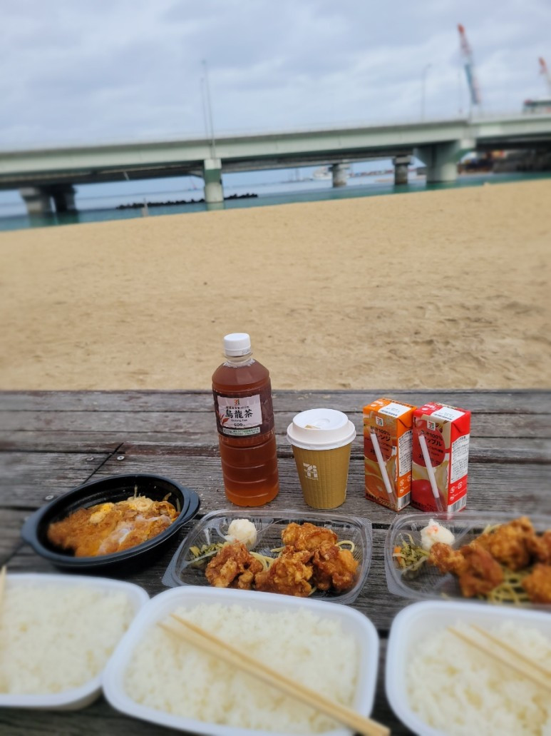 집 바로 앞에 도시락 가게는 이미 품절이고 바닷가 가는 길에 체인점 도시락가게 '호또모또'가 있어서 거기서 포장했다.