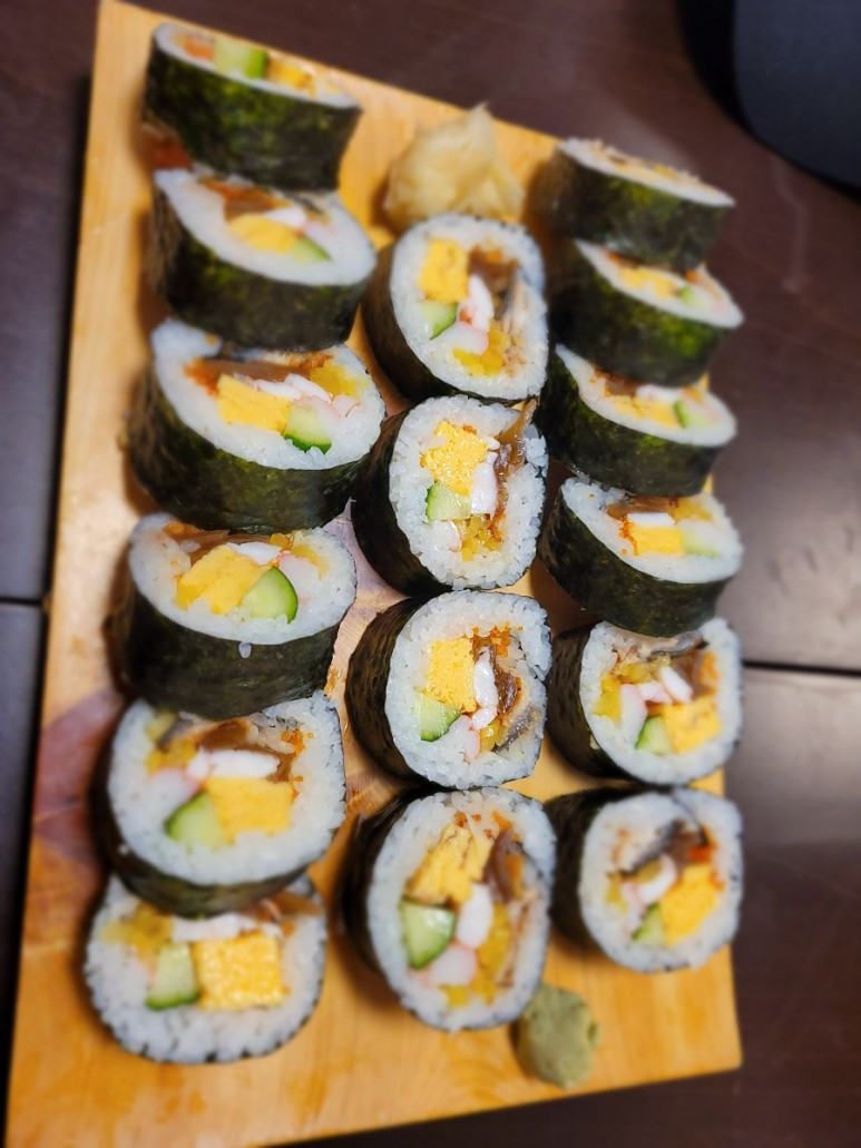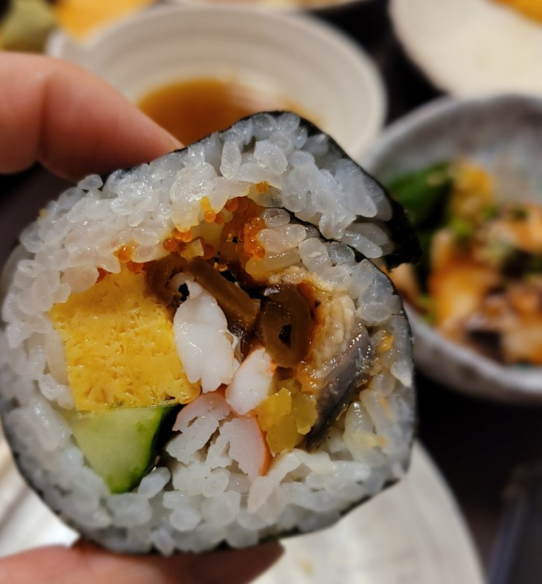 큰 김밥 하면 요즘 한국김밥들 여기저기 많이들 나오는데 이만큼 큰 건 처음이다.