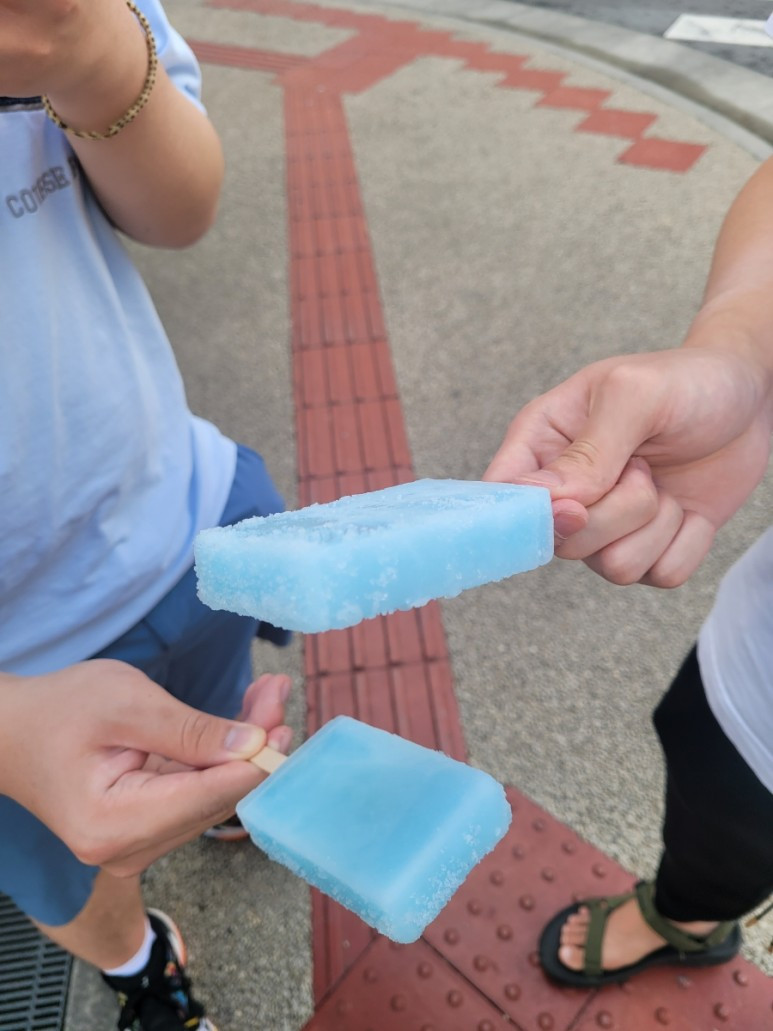 버스 정류장까지 걸어서 6분 거리인데 버스가 오는 시간까지 30분도 넘게 남아서 우리는 아이스크림 하나씩 들고 다음 정거장까지 걸었다.