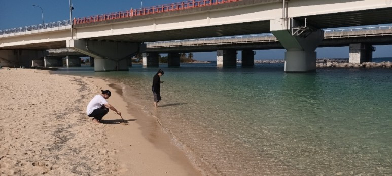 바닷가 쪽으로 가서 해변이 보이는 다리를 건너고 다시 해변으로 내려가 발도 담그고 땅도 파고 사진도 찍었다.