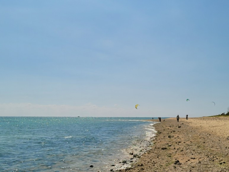 산호해변 위로 패러그라이딩을 하는 사람도 있고 그늘에 돗자리를 펴고 여유롭게 차를 마시며 이야기하는 사람들도 있었다.