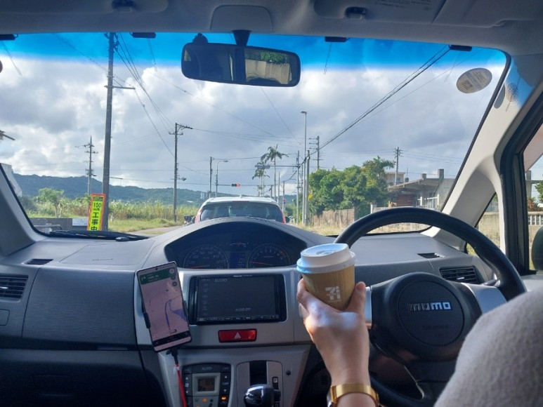 돌아가는길엔 한 손에 커피 들고 마시며 운전하는 여유도 부려본다.