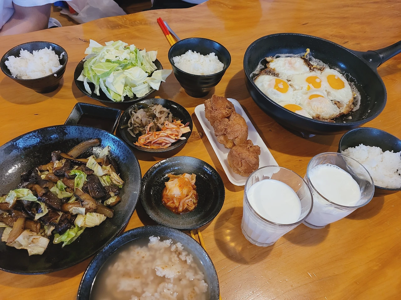 집에 장 봐둔 게 많아 맛만 보고 나오자고 다 같이 약속하고 갔었는데...