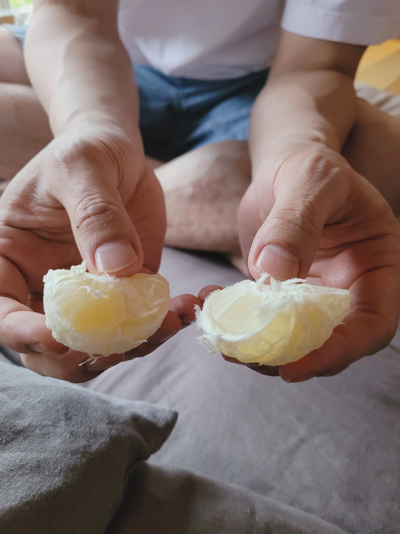 남편은 가지랑 양배추, 아주 실 것 같은 귤, 방울토마토들을 사 왔다.