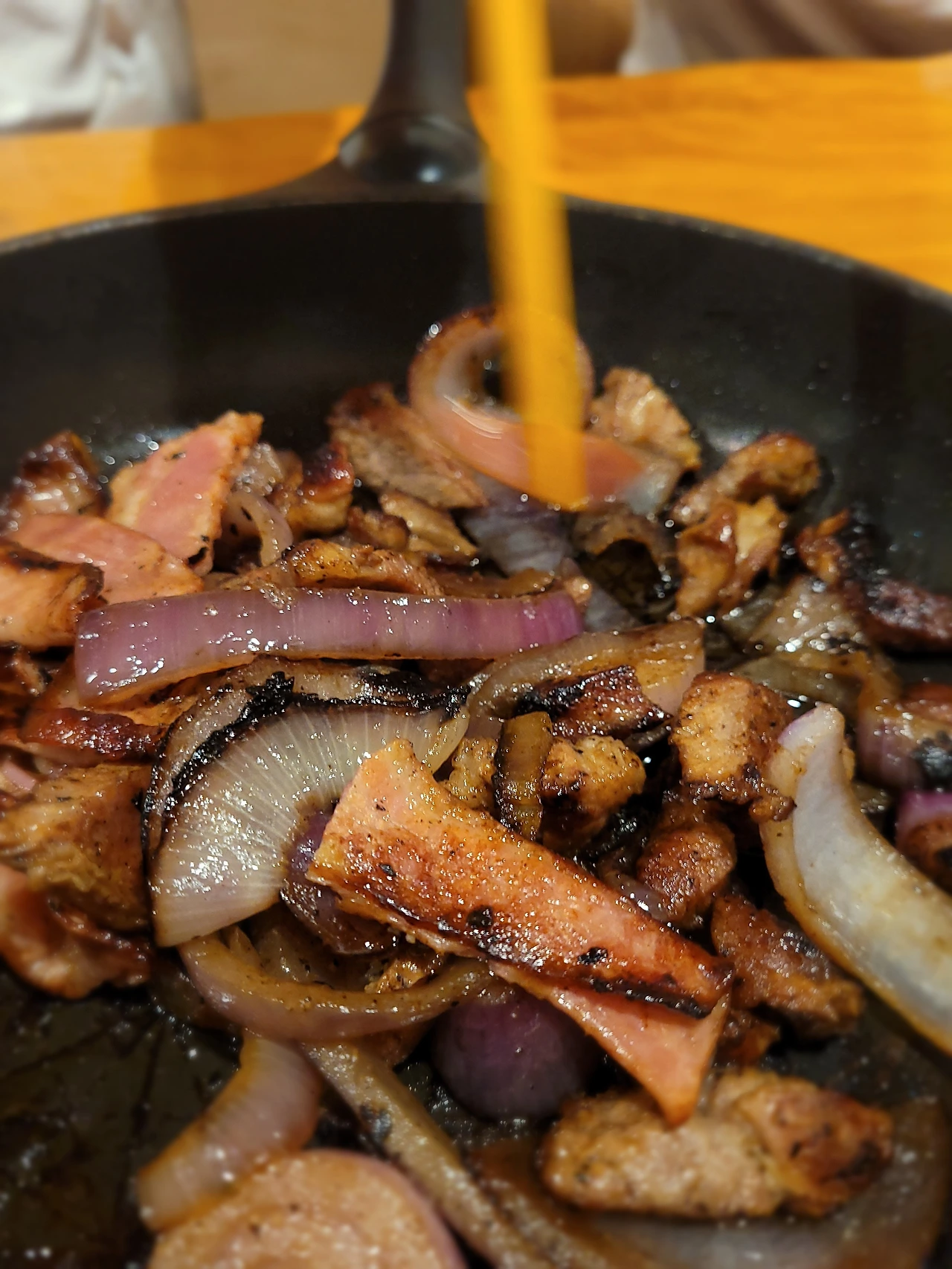 내가 어제 먹은 베이컨초밥이 너무 맛있었다는 말에 베이컨이랑 고기를 또 굽고 있다.