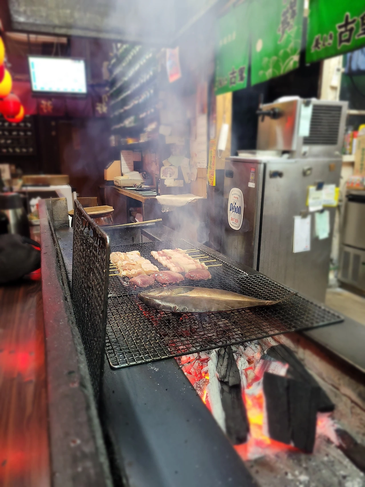 우리가 장 보는 마트 바로 앞쪽에 맛있는 꼬치집이 있다고 추천을 받았다.