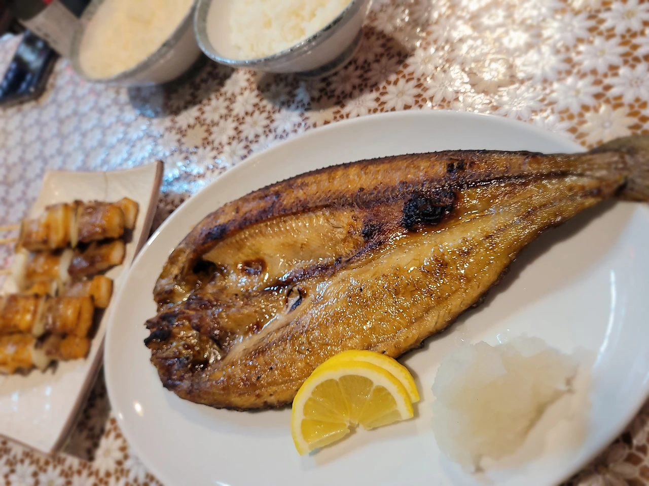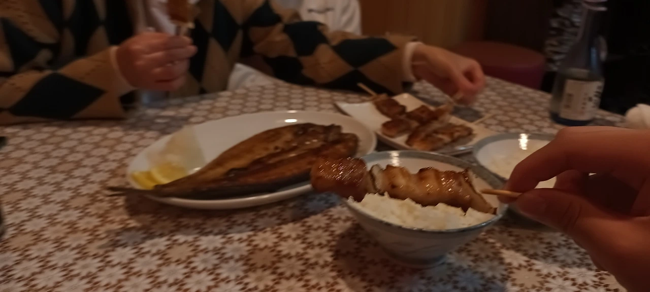꼬치에 임연수어구이에 공깃밥에 남편은 사케도 한 병 했다.