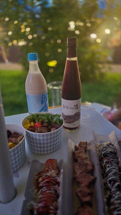병이 너무 예뻐서 찰칵다 시음하기는 힘들 것 같다 판단이 들어 친구랑 원하는거 각자 구매하고 빨리 먹거리 부스로 렛츠기릿!!!