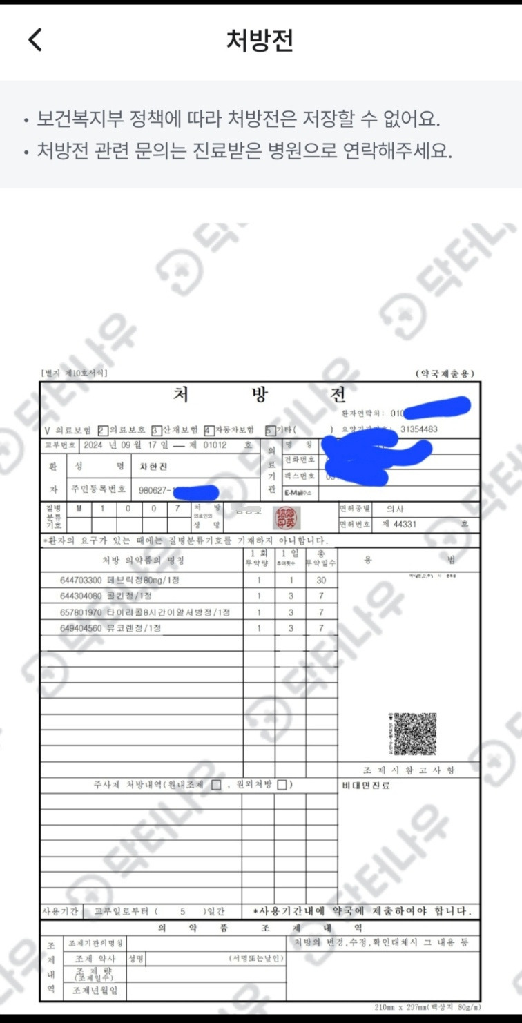 이 말을 듣고 바로 다운로드하고 스크롤 쫙쫙 내리던 중 다행히도 진료를 봐주시는 선생님이 계셔서 처방전 받고, 약국도 명절에 여는 곳이 있어 약 잘 타먹고 지금은 호전이 된 상태이다.
