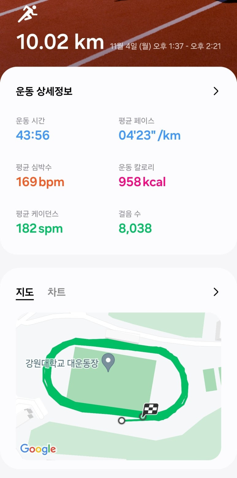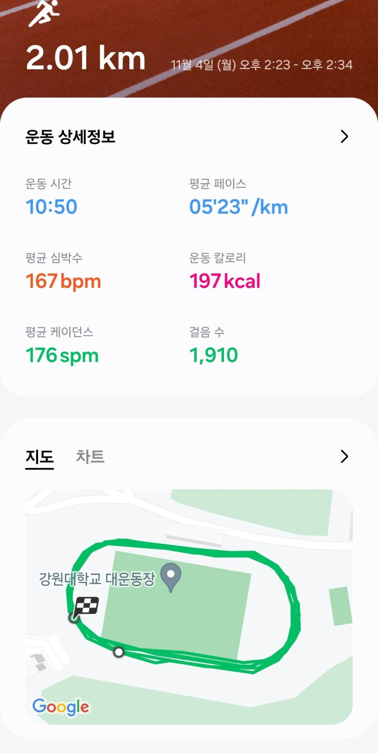 엄청난 걱정에 오늘은 일을 쉬고 잠 푹 자고 간만의 '강원대학교' 트랙을 뛰러 나갔다.