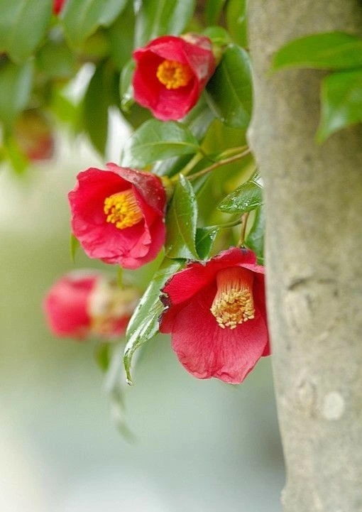 만발하게 미소 짓는 동백꽃,