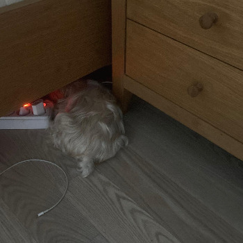 관리실 방송은 스피커를 타고 한 번 더 이어서 나왔다. 큰 소리가 다시 들리니 뽀삐는 몸을 한껏 웅크리고 작은 머리를 내 겨드랑이 사이로 쏙 집어넣어버렸다. 평소에는 절대! 내 곁에 오지 않던 뽀삐가 낯설고 큰 소리가 꽤나 두렵고 무서웠던 모양이었다. 그때서야 뽀삐가 소리에 민감하게 반응을 하는지도 처음 알게 되었다.