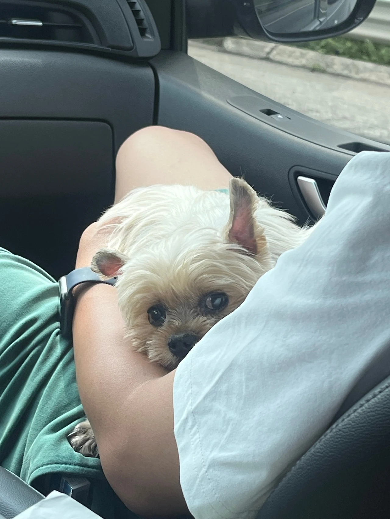 차를 타고 4시간이 걸리는 곳까지 뽀삐를 데려가는 길은 쉽지 않을 거라 생각했지만 뽀삐는 남편이 곁에 있으면 덜 불안해해서 크게 어려움 없이 내려올 수 있었다.