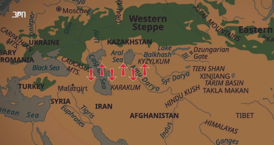 이란 북부와 카스피해 남부를 가로지르는 산맥입니다. 수도 테헤란을 위로 덮으면서, 카스피해 남쪽을 따라 동서로 900km 정도 길게 뻗어있죠. 이란에게 있어서 이 엘부르즈는 테헤란을 방어하는 천혜의 방벽입니다. 특히 카스피해 북쪽, 초원이 펼쳐진 스텝 지역 민족들의 침입을 막는 역할을 해왔죠.