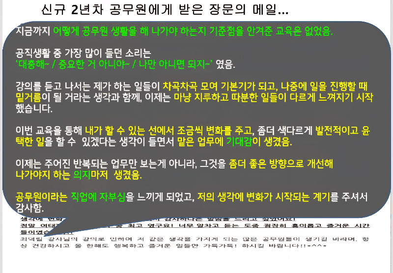 강연 현장에서 만난 2년 차 신규 공무원과 국가 사무관들의 고백은 제 가슴을 아프게 했습니다.