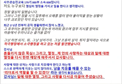 동료 여러분, 우리는 단순히 월급을 받는 직장인이 아닙니다. 누군가의 삶을 바꾸고, 국가의 미래를 설계하는 '총감독'인 동시에 머슴입니다. 부디 당당하십시오. 여러분의 열정은 결코 헛되지 않습니다.