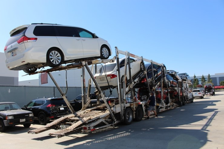 국내 차량운송용 트레일러는 한 번에 약 7대 정도 싣을 수 있는데 2층에 4대, 1층에 3대를 싣는다.