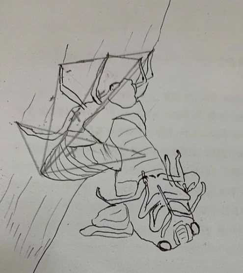 In one case (2020), I saw a curved leaf, in another (2023), a blade of grass with a jagged shape, and in another (2019), a cicada emerging from the rainy season straightened itself and molted.