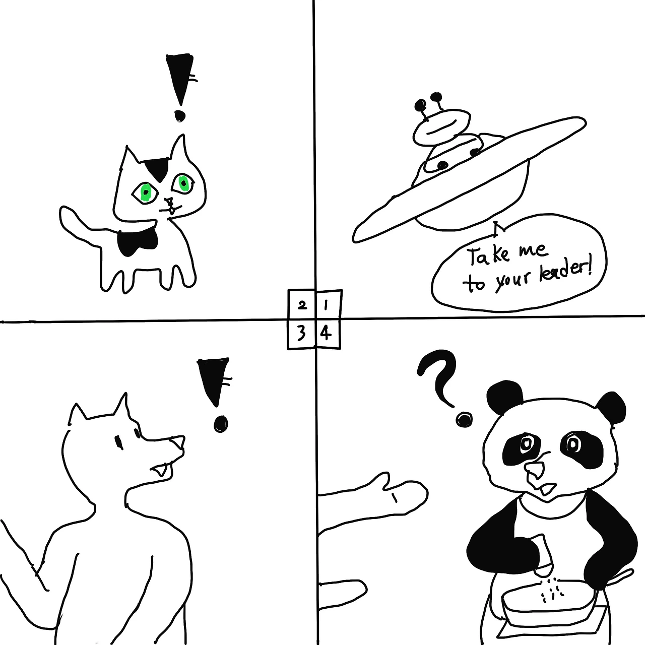 그래서 팬다인 코코를 리더로 생각하고 외계인(우주인)을 코코에게 데리고 간다는 설정이었습니다.