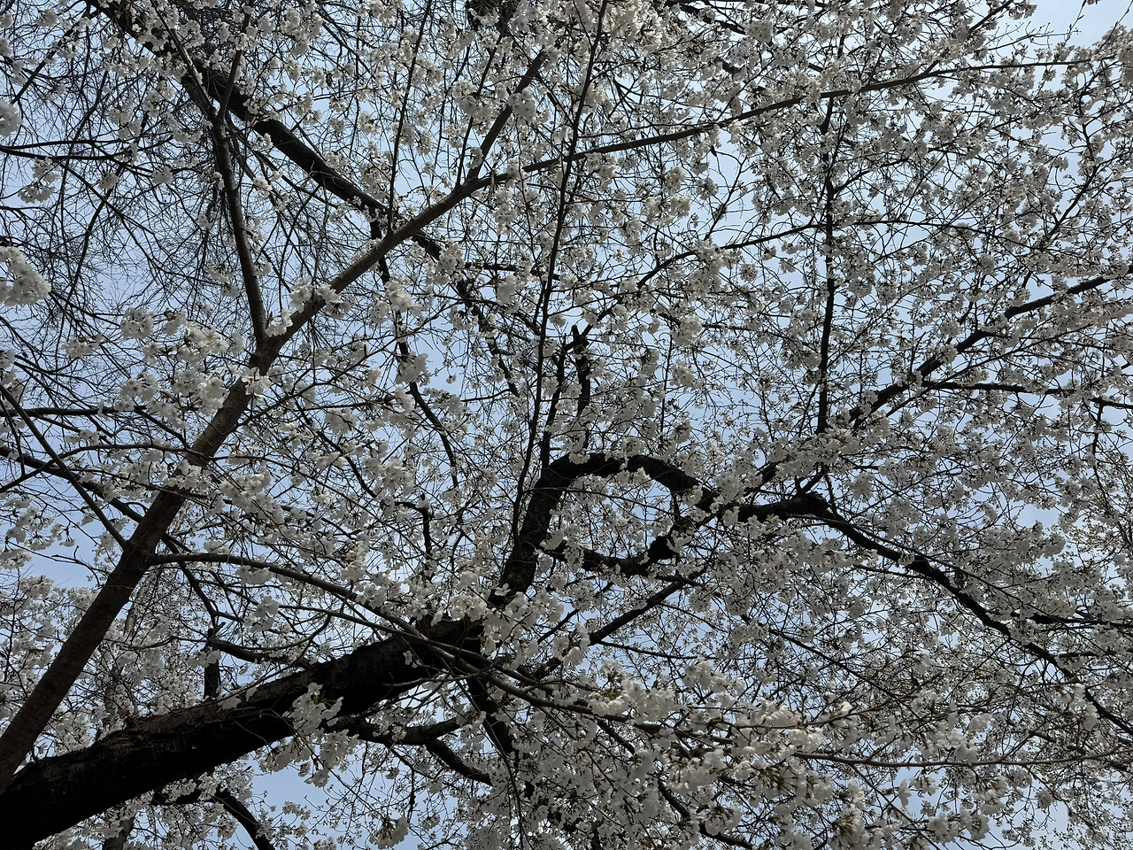 벚꽃 아래에서 본 하늘은 꽃반 하늘 반