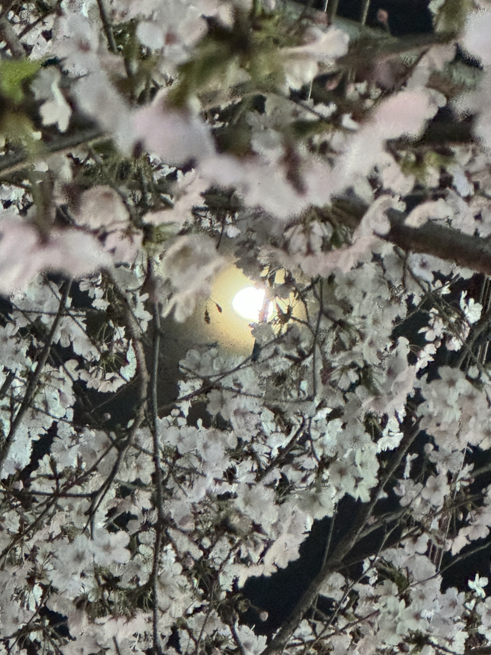 달무리가 벚꽃 사이를 은은하게 비춘다