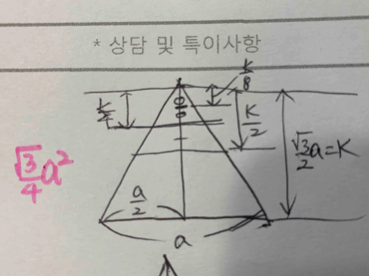 이제 잎 안쪽의 작은 정삼각형들의 넓이의 합을 구해보면 아래와 같습니다