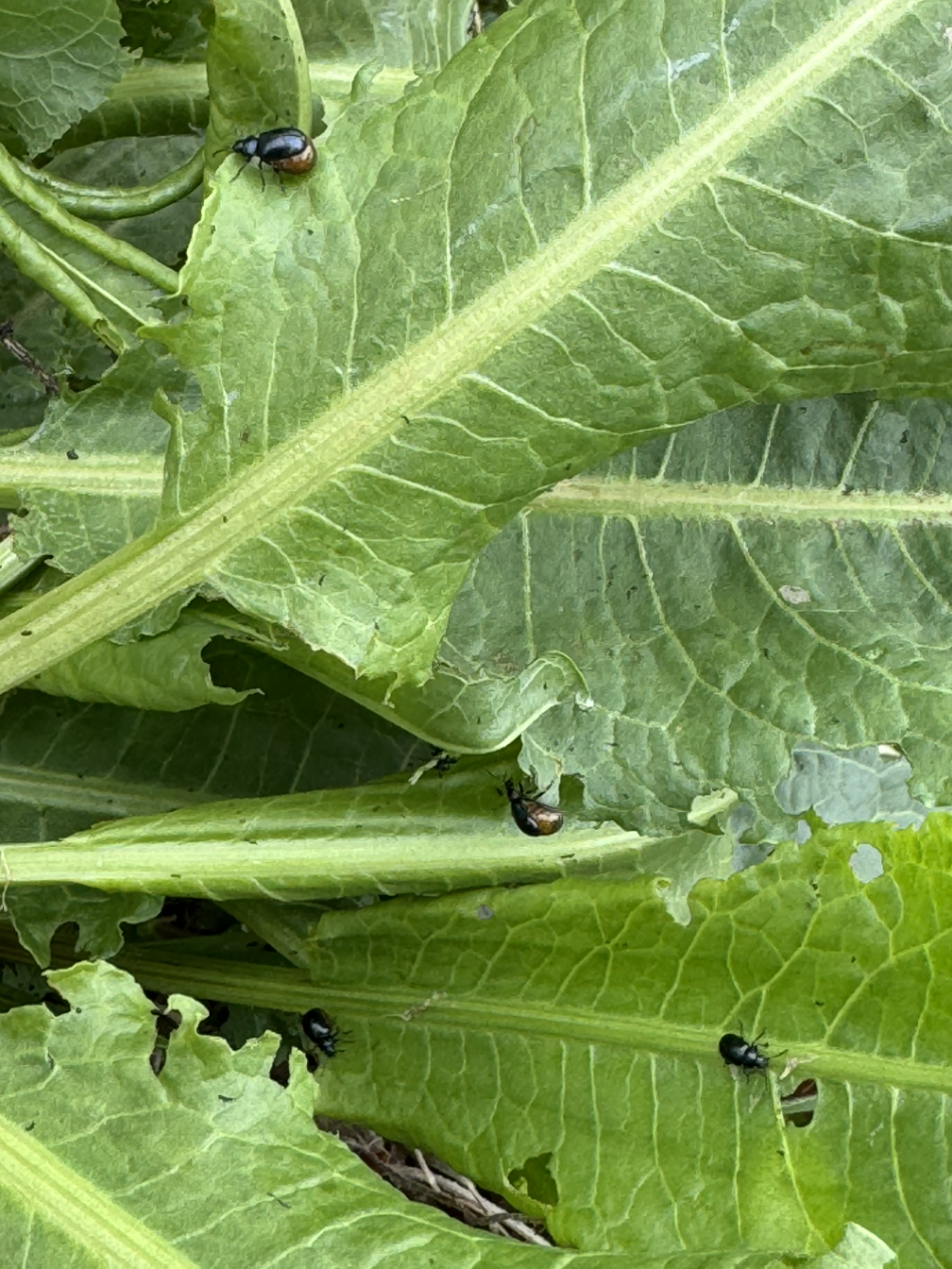 이미 짝짓기가 끝난 소리쟁이에는 좀남색잎벌레 애벌레가 꿈틀꿈틀 다닥다닥 소리없이 붙어 식사중이다…