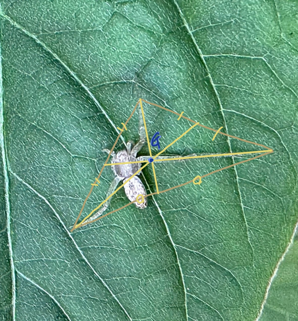 거미의 다리의 끝은 세 개 모두가 모이면 삼각형을 이룹니다.