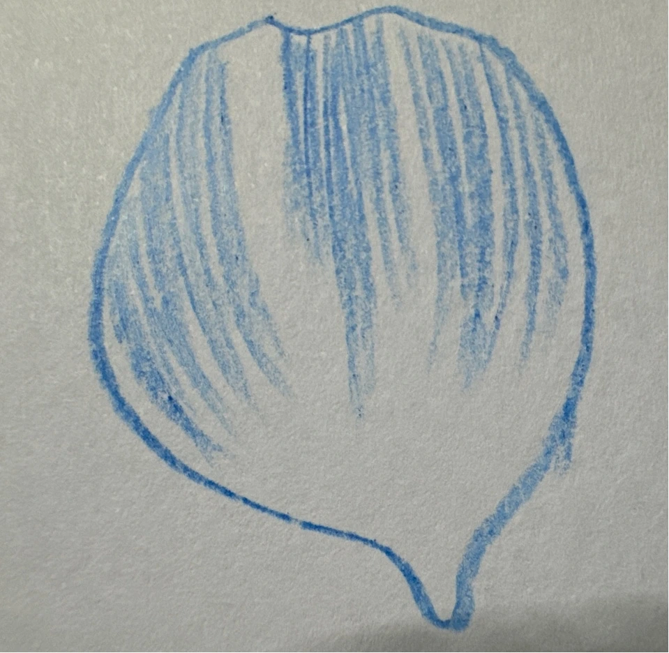 거칠게 표현하면 이런 느낌으로 꽃잎 안쪽에서 선이 가늘어지게 그려야 합니다.