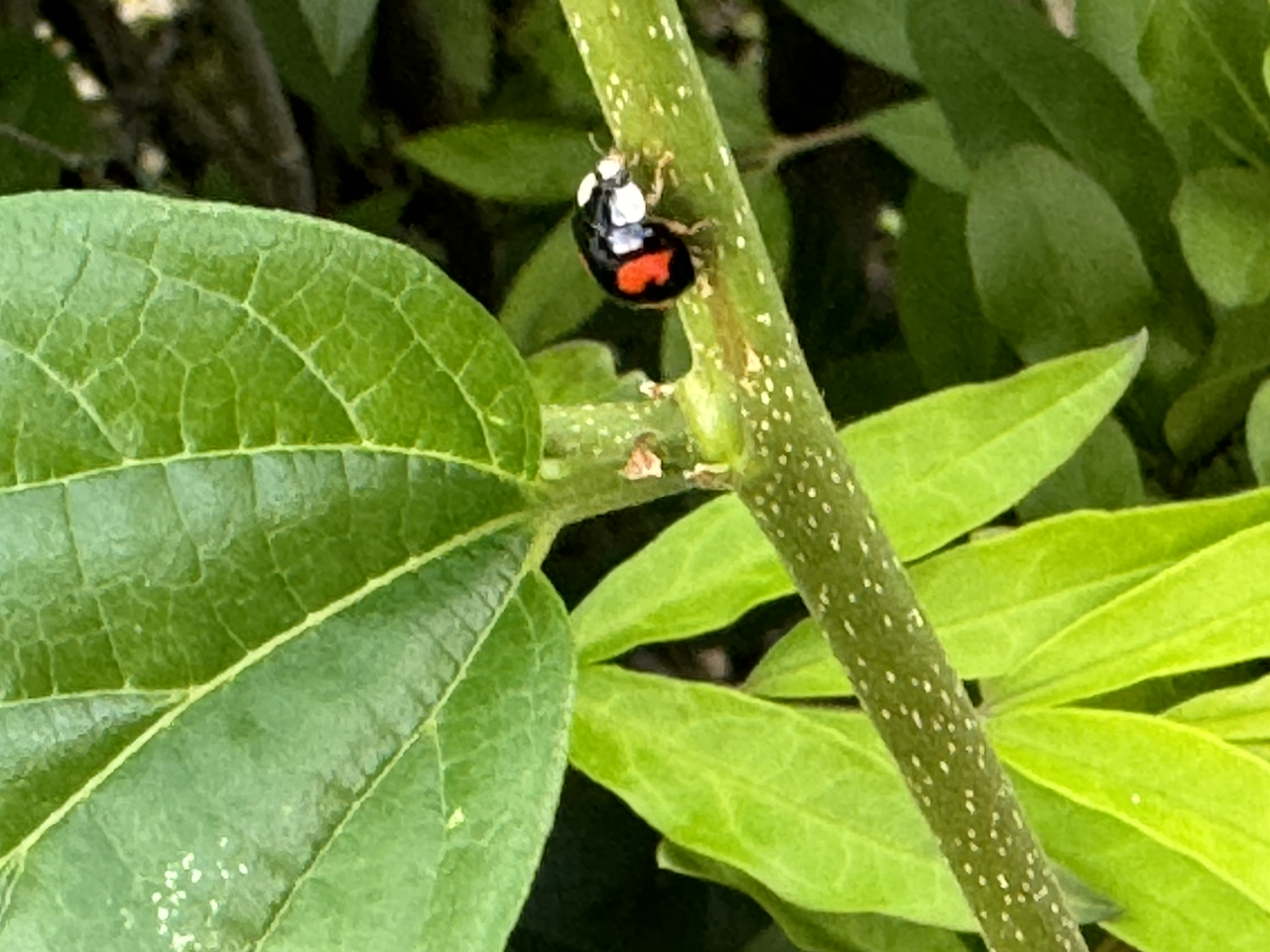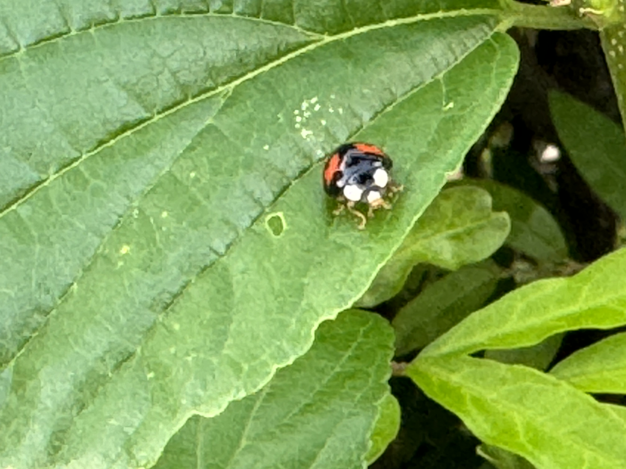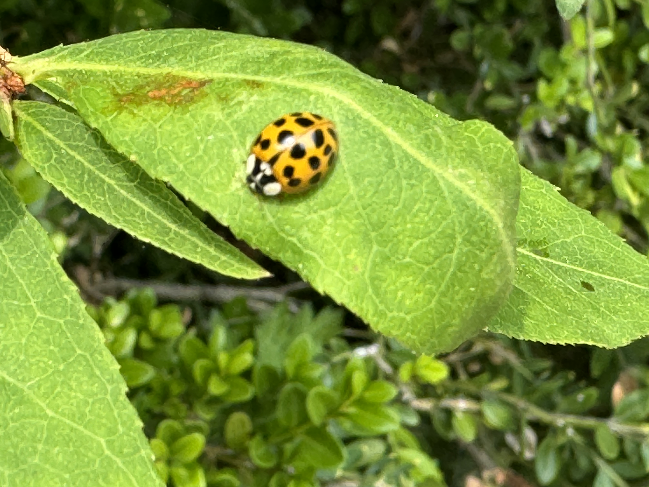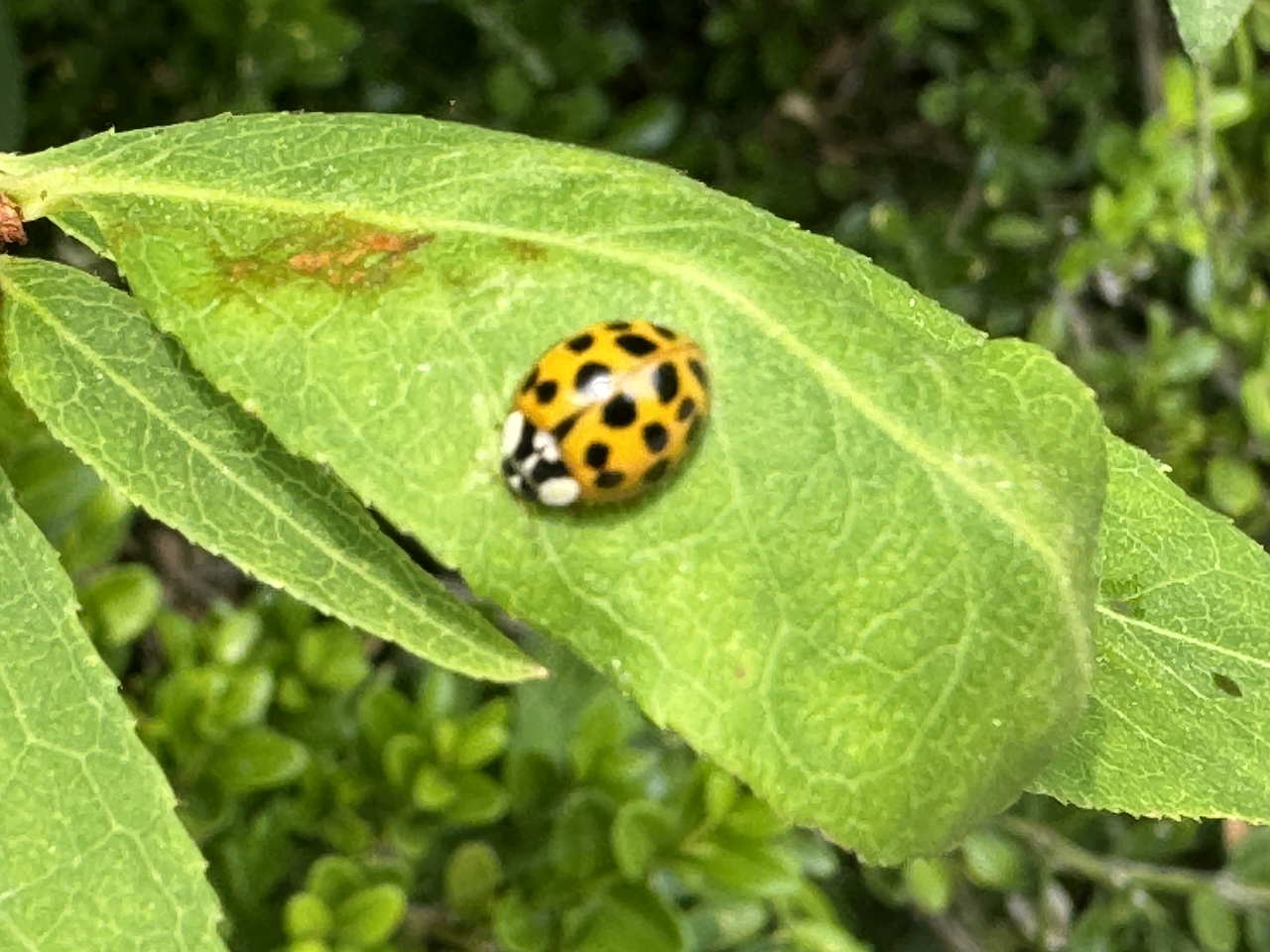 요새 칠성 무당벌레보다 이십점박이 무당벌레가 많아졌어요. 칠성 무당벌레는 진딧물을 잡아먹는 육식입니다. 반개로 이십점박이 무당벌레는 초식입니다. 그래도 가끔 남의 알을 먹기도 하면서 동족포식을 합니다.
